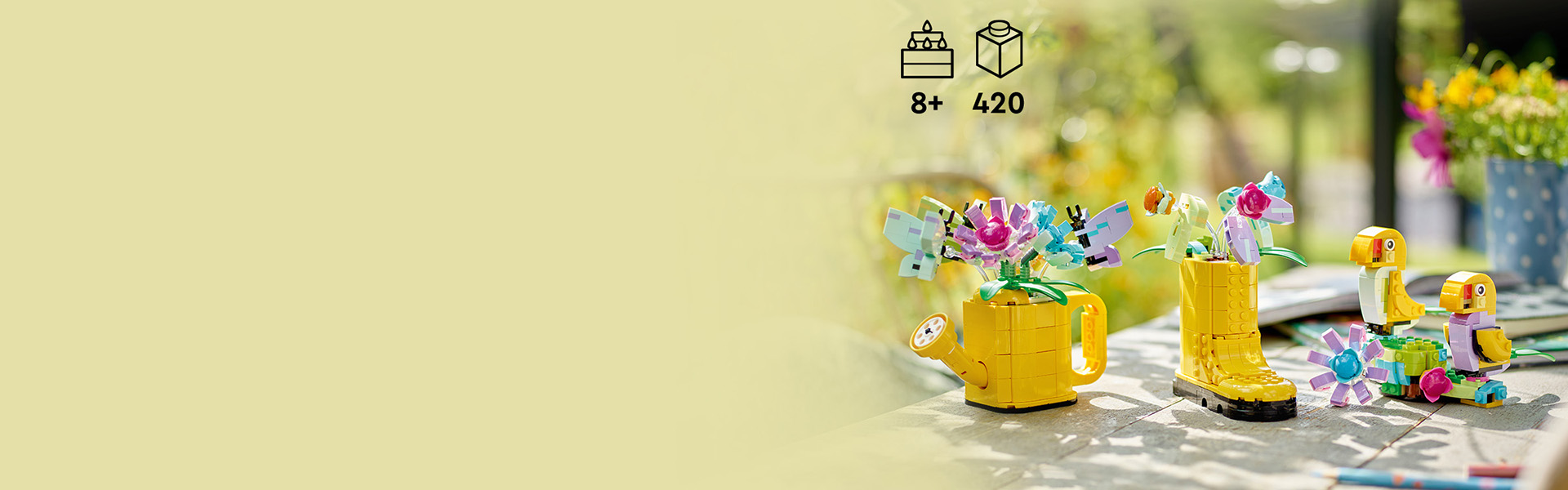 - Measurements – This 420-piece LEGO® building set features a watering can toy measuring over 5 in. (13 cm) high, 4.5 in. (12 cm) wide and 6 in. (15 cm) deep