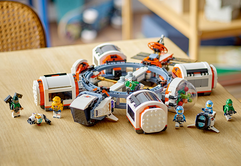 - What’s in the box? – Includes a toy space station, spaceship, space bike and room pods including a science lab, workshop, kitchen, sleeping quarters and biodome, plus 6 astronaut minifigures